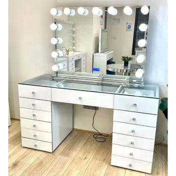 Camera da letto in legno sedia di vetro Makeup Room con specchio a Led e cassetto di luce, toletta per camera da letto